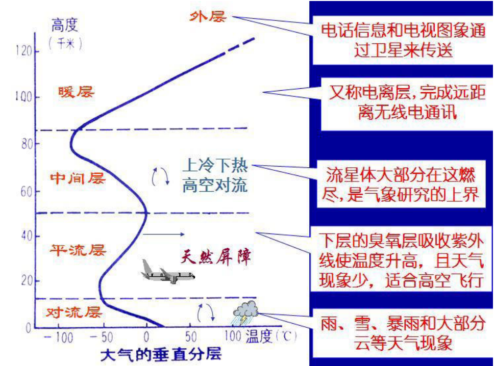 多旋翼飞行器的飞行离不开特定的大气环境,大气的绝大部分质量集中在对流层和平流层,目前多数航空器包括多旋翼都在这两层大气内活动。对流层存在雨、雪、暴雨等多种天气现象,平流层则因下层臭氧层吸收紫外线使温度升高,且天气现象少,更适合高空飞行。