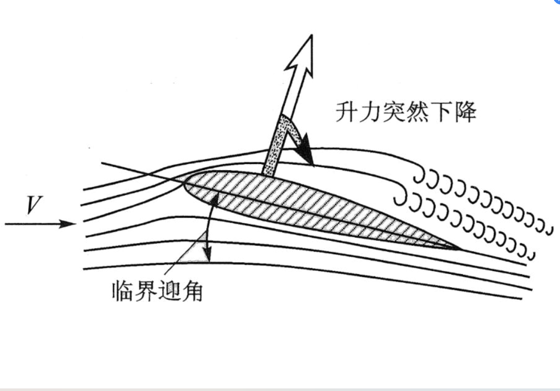 随着迎角的增大,升力也会增大,但当迎角增大到一定程度时,气流就会从机翼后缘开始分离,尾部会出现很大的涡流区,这时,升力会突然下降,而阻力却迅速增大,这种现象称为“失速”。失速刚刚出现时的迎角叫“临界迎角”。飞机不应以接近或大于临界迎角的状态飞行,否则会使飞机产生失速,甚至造成飞行事故。