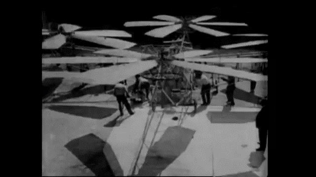 1921 年,G. De Bothezat 在美国建造的大型四旋翼直升机,这架四旋翼飞机除了飞行员外还能承载3个人,因发动机性能不足,未能达到预期 100 米的飞行高度,仅飞到 5 米。