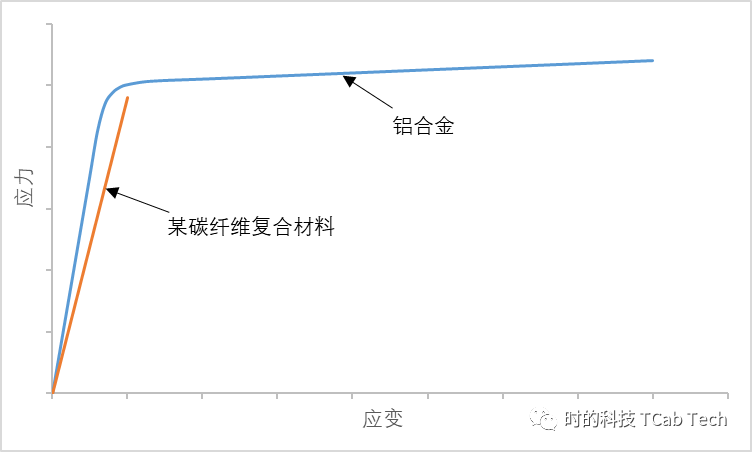 航空业常用的 “2 系” 或 “7 系” 铝合金,是通过在铝金属中添加不同比例的铜、锌、镁等合金金属,来呈现不同的力学特性(市面上号称使用航空铝的产品,大多也是这两个系列的铝合金)。无论如何调配,铝合金都属于韧性材料,有着明显的屈服特性;而飞机结构常用的碳纤维复合材料则是脆性材料,这一差异在应力 - 应变图中可清晰体现。
