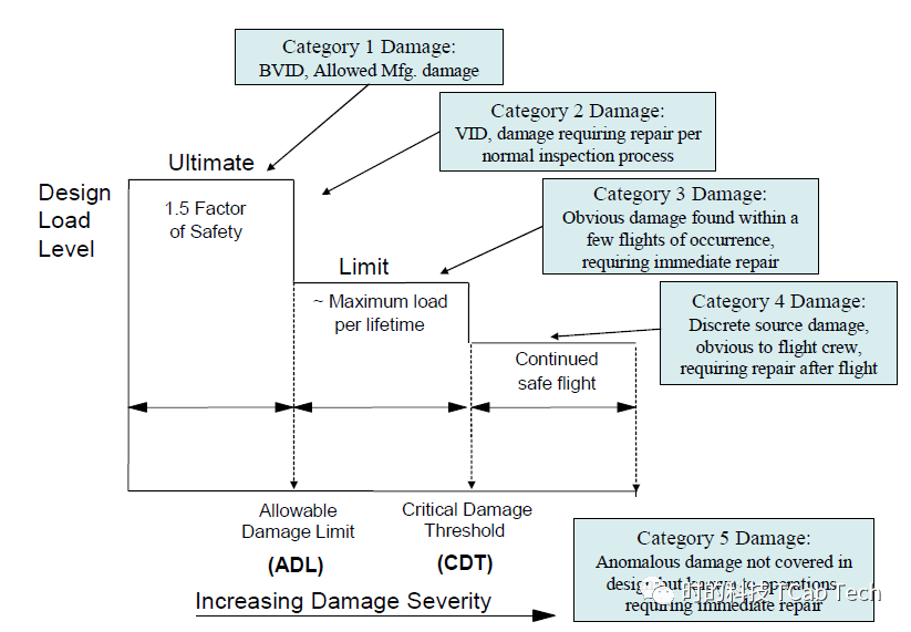 对于复合材料结构,AC 20-107B 中给出了五种损伤分类及对应要求: