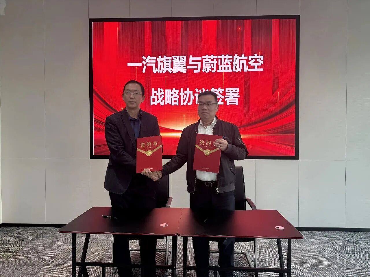2026 年 1 月 28 日,一汽旗翼(深圳)科技有限公司与湖北蔚蓝通用航空科技股份有限公司于深圳正式达成战略合作。双方代表一汽旗翼总经理李丹、蔚蓝航空总经理程道华完成签约,深圳市大鹏新区发展和财政局副局长廖少锴到场见证。